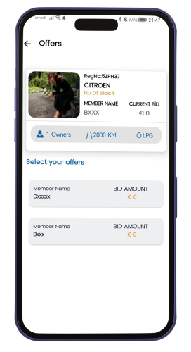 Ontvang Biedingen Na de aanmelding is het tijd om te zien wat uw auto waard is. Gekwalificeerde dealers zullen beginnen met bieden op uw voertuig. U ontvangt meldingen voor elk nieuw bod, zodat u altijd up-to-date bent met de meest recente marktwaarde van uw auto.